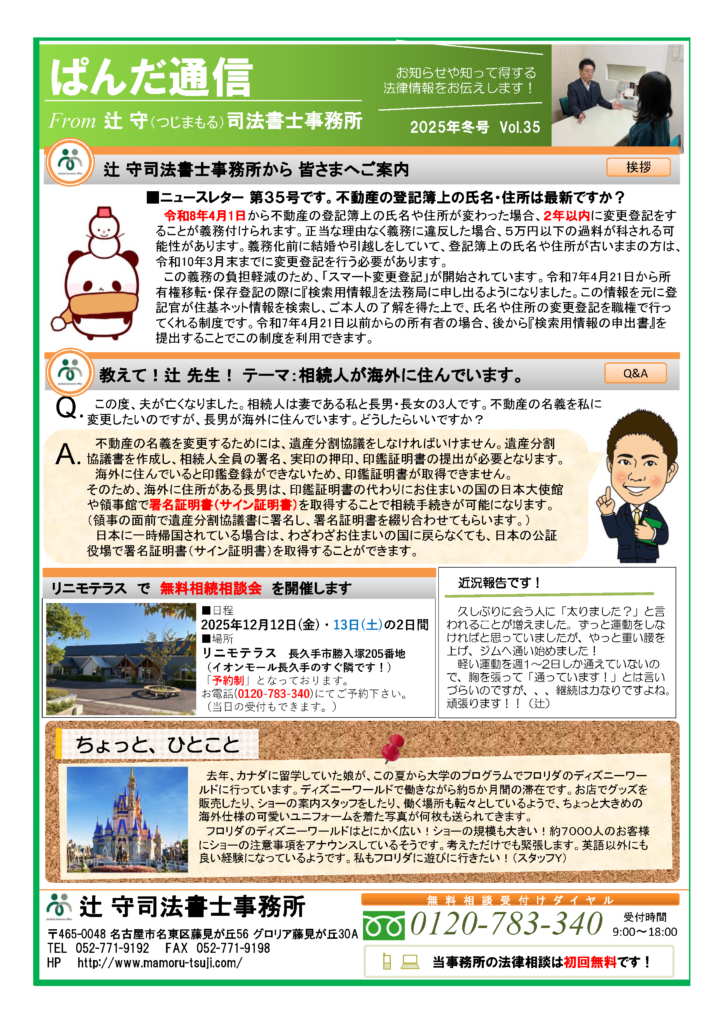 平素より、辻守司法書士事務所をご利用いただき、誠にありがとうございます。