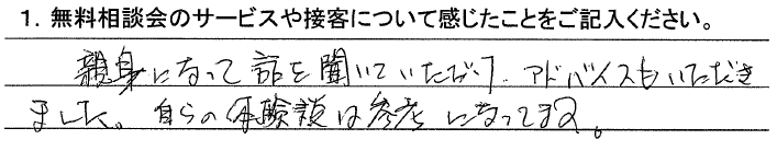 親身になって話を聞いていただけ、アドバイスもいただきました。