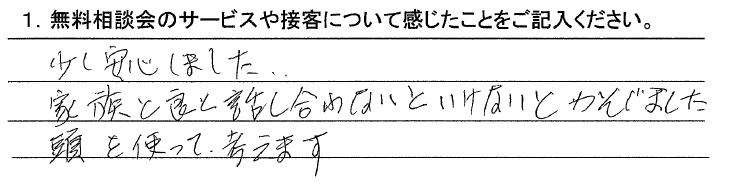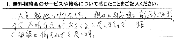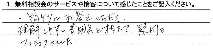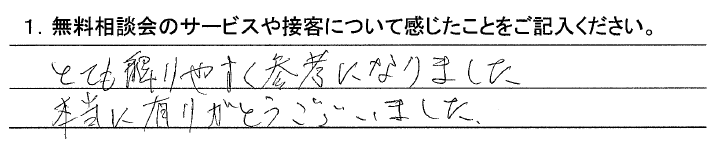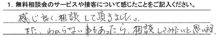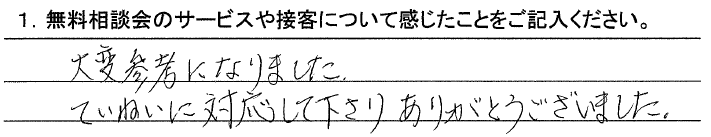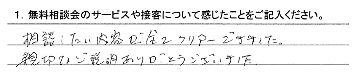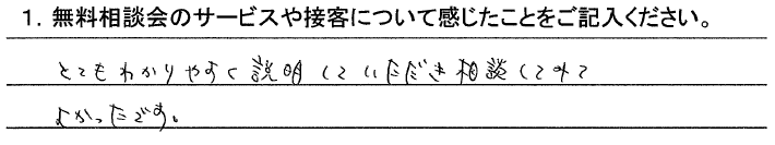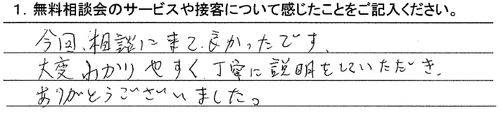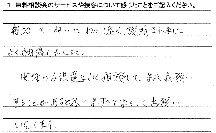 親切ていねいにわかり安く説明されまして、よく納得しました。