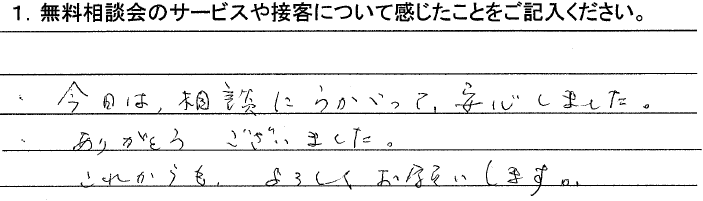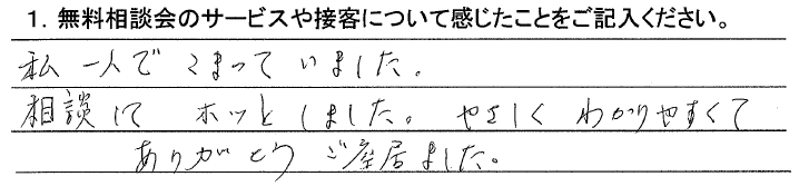 相談してホッとしました。やさしくわかりやすくてありがとうご座居ました。