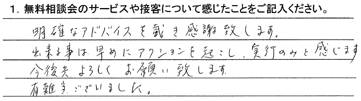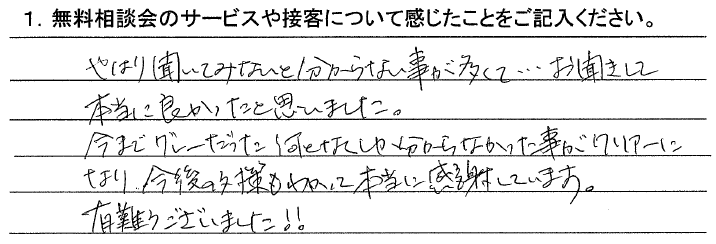 ご相談者の方の感想を「お客様の声」として掲載したいと思います。(掲載許可OKを頂いた一部の方のみ)
