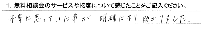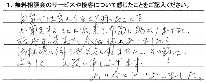 自分では分からなくて困ったことをお聞きすることが出来て、本当に助かりました。