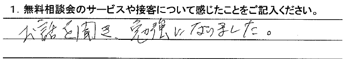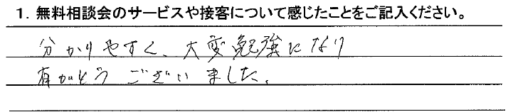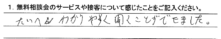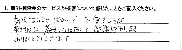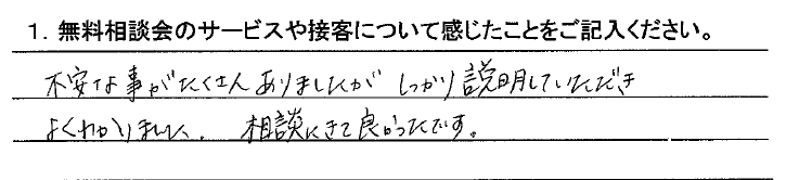 不安な事がたくさんありましたが、しっかり説明していただきよくわかりました。