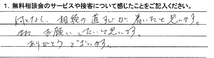 何となく、相続の道すじが着いたと思います。また、お願いしたいと思います。