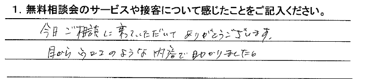 今日ご相談に乗っていただいてありがとうございます。