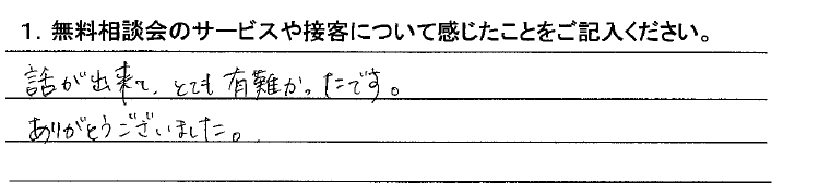 話が出来て、とても有難かったです。ありがとうございました。