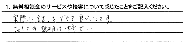 実際に話しをできて良かったです。TELでの説明は大変で・・・